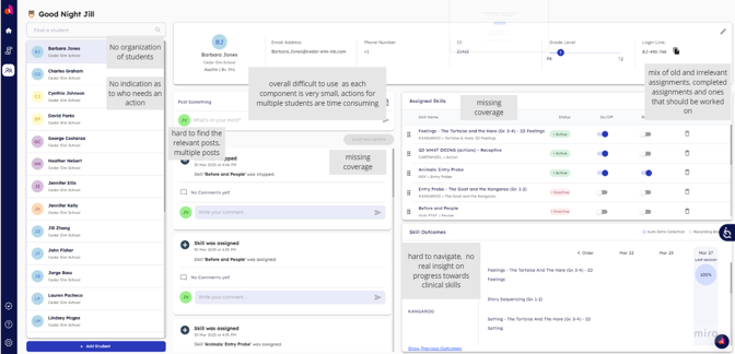 In Amplio, those problems were meant to be solved in large by the student page, however, in order to resolve the aforementioned pains, there are multiple additions and changes required.